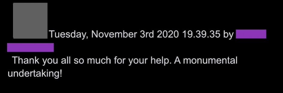 “Vielen Dank an alle für ihre Hilfe. Ein monumentales Unterfangen!”